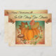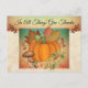 Personalise this Unique "One of a Kind" Thanksgiving Greeting Postcard! It Features a Beautiful Orange Pumpkin Surrounded by Fall Leaves in Shades of Light Orange, Dark Orange, Green with Orange Berries and Brown Mushrooms and the Inspirational Words..."In All Things Give Thanks"!