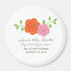Simple and chic In Bloom Floral Save the Date Magnet featuring an illustration with a lovely pair of flowers in pink and orange flanked by an array of vibrant green vines. This elegant save the date magnet is perfect for announcing a spring or summer wedding. Easy to customise, simply add your wedding details in the text fields provided. Click "Customise It" to find more personalisation options.