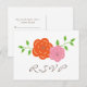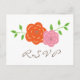 Simple and whimsical In Bloom Floral Wedding RSVP Postcard featuring an illustration with a lovely pair of flowers in pink and orange flanked by an array of vibrant green vines. This elegant wedding response postcard is perfect for a spring or summer wedding. Easy to customise, simply add your wedding details in the text fields provided. Click "Customise It" to find more personalisation options.