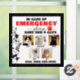In case of fire, accident, or emergency situation, you can help first responders account for your furry family members with this handy door sign. For the multi-cat household with five kitties, this chart shows each cat's name and visual photo for easy identification. Complete with customised phone number contact detail and easy to place on windows or other smooth glass surfaces. "In case of emergency, please save our 5 cats."