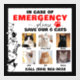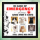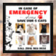 In case of fire, accident, or emergency situation, you can help first responders account for your furry family members with this handy door sign. For the multi-cat household with six kitties, this chart shows each cat's name and visual photo for easy identification. Complete with customised phone number contact detail and easy to place on windows or other smooth glass surfaces. "In case of emergency, please save our 6 cats."