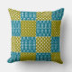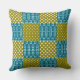 In dark multi-coloured tones, retro geometric cushion