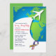 A versatile going-away party invitation suitable for all travelers. Featured here for a military send-off. The card shows a map and an aeroplane with a white exhaust cloud. The "Support Our Troops" ribbon can be dragged to any location, made larger or smaller (+-) or ELIMINATED. (FP)