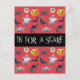 A cute Halloween pattern decorated with eyeballs, pumpkins, spiders, ghosts, ravens, bats, and black cat images. There is a black stripe, on which is written the words, "In for a Scare" in white. Happy Halloween!!