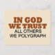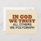 In God We Trust. All Others We Polygraph! Funny and Ironic Parody of the US Motto saying / slogan. The brown background colour can be changed to any colour.