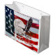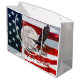 Large gift bag featuring In God We Trust compilation of photos of the American Flag, a church steeple with cross, a flying bald eagle, and the full pink super moon moon. Looking for more prints or products? Feel free to visit my store: http://www.zazzle.com/timelessmomentsphtgy This photo was created by Jennifer White with Timeless Moments Photography. All images are copyrighted © Timeless Moments Photography/Jennifer White. All rights reserved.