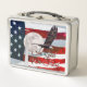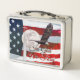 A metal lunch box featuring In God We Trust compilation of photos of the American Flag, a church steeple with cross, a flying bald eagle, and the full pink super moon moon. Looking for more prints or products? Feel free to visit my store: http://www.zazzle.com/timelessmomentsphtgy This photo was created by Jennifer White with Timeless Moments Photography. All images are copyrighted © Timeless Moments Photography/Jennifer White. All rights reserved.