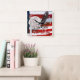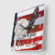 Patriotic Clock featuring In God We Trust compilation of photos of the American Flag, a church steeple with cross, a flying bald eagle, and the full pink super moon moon. Looking for more prints or products? Feel free to visit my store: http://www.zazzle.com/timelessmomentsphtgy This photo was created by Jennifer White with Timeless Moments Photography. All images are copyrighted © Timeless Moments Photography/Jennifer White. All rights reserved.