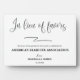 In lieu of favours wedding sign -Design is based on black and white scripture.