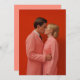 Minimalistic photo from two people kissing in a pink suit with a red background