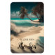 Turquoise water and palm trees on a white sandy beach magnet art. Quote: "In love with the sea."