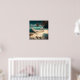 Turquoise water and palm trees on a white sandy beach wall art. Quote: "In love with the sea."