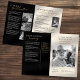 This elegant memorial program design features a refined black and cream colour scheme with modern serif and handwritten script fonts, creating a heartfelt and dignified tribute to a loved one. The layout blends thoughtful typography with space for personalised headings, custom acknowledgements, and black and white photos, making it ideal for a celebration of life or funeral service. Subtle gold accents add a touch of sophistication, while the structured format allows for an organised presentation of eulogies, readings, and memorial activities. This fully editable template offers a beautiful way to honour a life well-lived, combining timeless style with meaningful personalisation for an unforgettable remembrance.