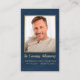 This elegant custom sympathy memorial photo funeral card features a photo bordered by a faux gold frame on a background on faux blue leather. Below the photo in modern hand lettered script it reads "In Loving Memory". Below is a name, dates . The back of the card has an original poem which may be.left as is or personalised to one of your own or a prayer. Designed and poem written by ©Susan Coffey.
