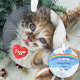 Customise with favourite dog or cat's photos, and name . Ornament is double sided, you can do 2 favourite photos, one on each side. Personalise name on the front, and dates on the back.