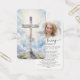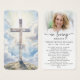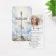 This memorial prayer card design features a prominent Christian cross with a radiant sky background, symbolising faith, peace and eternal hope. Paired with a soft photo layout and the phrase “In Loving Memory" with name and dates, the design offers a comforting tribute for honouring a loved one’s life and spiritual legacy. The reverse side includes an editable "The Lord’s Prayer," providing words of devotion and reassurance for family and friends during funeral services, memorial gatherings or celebration of life ceremonies. Its small and portable size (3.5x2") makes this keepsake card convenient to carry as a reminder of their life and spirit. Personalisation makes these cards unique.