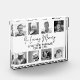 In loving memory wedding memorial acrylic block with a 8 photo collage in black and white (a coloured option is available in the shop). The example reads "of those forever in our hearts today and always". White simple calligraphy design for the reception or ceremony.