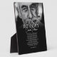 This personalised memorial photo plaque features a black-and-white portrait background with the phrase "in loving memory" in elegant white serif lettering, layered above the name "Charlie Patterson" in graceful script. Below the name, the timeless and comforting poem “Do Not Stand at My Grave and Weep” by Mary Elizabeth Frye is displayed in a clean, centred layout, creating a heartfelt tribute. The combination of refined typography and a monochromatic colour palette gives this design a timeless, respectful aesthetic. Perfect for funeral displays, memorial tables, or as a lasting remembrance gift, this custom tribute plaque beautifully honours the life and legacy of a loved one.
