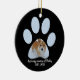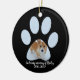 Beautiful dog tribute Christmas ornament to celebrate a new puppy or create a memorial gift for a treasured pet who has passed away. Customise this cute paw print shaped design with a photograph behind the adorable paw pads. Add your own dog or cat photo and personalise with a name underneath. A sentimental picture keepsake.