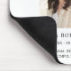 Personalise this simple elegant funeral memorial mouse pad with the name and dates of your loved one. Modern elegant script typography on a clean white background. Perfect addition to your funeral memorial remembrance event and a keepsake. Easy to customise photo and text. Our heartfelt condolences on your loss.