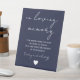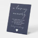 In Loving Memory Elegant Script Navy Blue Pedestal Sign