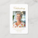 "In loving Memory" Elegant White Photo Prayer Business Card