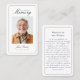 This beautifully white minimal designed funeral photo prayer card allows you to create a heartfelt tribute to your loved one. Simply add your favorite photo and customize the text with a meaningful message or scripture. The front of the card features classic, timeless typography to honor their memory, while the back includes a customizable prayer or poem set against a sleek black background. Thoughtfully crafted, this card serves as a cherished keepsake, offering comfort and remembrance for family and friends.