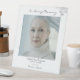 Honor your loved one with a beautifully designed pedestal tabletop funeral photo sign, created to serve as a heartfelt tribute during a funeral, memorial service, wake, or celebration of life. This elegant display sign features a simple floral design motif. Add your cherished picture along with custom name and dates, offering a meaningful way to say in loving memory.