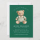 A tender tribute to a precious child, this announcement card features a charming watercolor teddy bear against a rich green backdrop. The phrase "In Loving Memory" is elegantly displayed, setting a solemn yet loving tone. The design includes space for the child's name and service details, making it a functional and beautiful way to share the news of their passing. The gentle imagery and heartfelt message provide comfort during a difficult time.