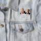 Memorial tribute funeral button featuring a elegant marble pattern background, 2 photos of the person who has sadly passed away, the sympathy saying "forever in our hearts", their name, and birth/death dates.