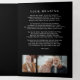 This sophisticated funeral program features a sleek, modern design that beautifully honours the memory of a loved one. The cover is highlighted by a photo of the departed, complemented by a classic "In Loving Memory" inscription that runs vertically down the side, creating a timeless and elegant look. Inside, the layout is clean and organised, providing space for an obituary, order of service, poem or prayer, acknowledgements, or other text of your choice. The black background adds a touch of formality and reverence, while the use of contrasting white text ensures readability. This program is not just a guide for the service but also a meaningful keepsake for those who wish to remember and celebrate the life of someone special.