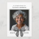 Celebration of life funeral programs with photo offer a beautiful and personalised way to honour your loved one’s memory while guiding guests through the service. This elegant design features a prominent photo on the front cover beneath a refined “In Loving Memory” heading, framed with a black and white striped bow motif that adds a touch of warmth and dignity. The interior or back includes a thoughtfully structured order of service, ideal for memorials that blend remembrance with celebration. Perfect for families organising a funeral, memorial service, or life tribute, this template allows for easy customisation of details. The clean, modern layout ensures it’s suitable for a variety of settings—from formal services to casual gatherings. Whether you're planning a church ceremony or a home remembrance, this funeral program design helps you honour the life, legacy, and personality of someone deeply cherished. A tasteful, heartfelt keepsake for guests that commemorates a life well lived.