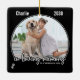 Honor your best friend with a custom dog photo pet memorial ornament. This unique pet memorial ornament keepsake is the perfect gift for yourself, family or friends to pay tribute to your loved one. We hope your memorial ornament will bring you peace, joy and happy memories. Quote " In Loving Memory . " With two paw prints on each side. Customize with favorite pet dog or cat photos, and name . Ornament is double sided, you can do 2 favorite photos, one on each side. Personalize name and date. See 'personalize this template' to change photo and name . COPYRIGHT © 2020 Judy Burrows, Black Dog Art - All Rights Reserved. Pet Memorial In Loving Memory Ceramic Ornament