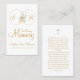 This remembrance memorial prayer card can be given as a keepsake at a Celebration of Life or funeral service or sent as a special tribute to those who were unable to attend. Design features name monogram in a circle with delicate floral accents with all text in elegant gold script typography. This card can be personalised with the monogram, name, dates and the favourite poem or prayer of your loved one.