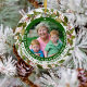 This beautiful memorial ornament remembers your father and grandpa with two photos, one on the front, and one on the back, and dates of his life, inside a Christmas wreath with holly greenery and the quote "In loving memory of a dear mother and grandma." Top of the ornament features a small white heart. Text can be changed to say "mother and grandma" or anything that will fit in the space.