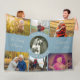 Personalised Photo Blanket in remembrance of a friend or family member. The wording in the centre reads "In Loving Memory" and "Always in our Hearts" along with the name and life span of your loved one. The photo template is set up for you to add 7 of your favourite photos to create your own unique memorial blanket. This custom photo blanket has a background colour of wedgewood blue with stone grey typography. You can edit the colours if you wish - just click customise to enter design tool - or message us for assistance.