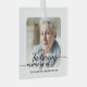 Modern In Loving Memory Photo ornament. Design featuring single photo, in loving memory script and name on the front. Personalise with your message, poem, quote etc on the back. Perfect memorial, tribute to a loved one who has passed away.