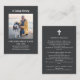 A photo of your loved one is featured in the centre of this funeral prayer card. In Loving Memory is written above. The deceased person's name, life dates and a short personalised tribute is placed below. A cross is on the back. There is space below for a favourite prayer or psalm.