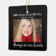 A simple yet elegant memorial christmas tree decoration, personalized with your favorite photograph of your loved one and typography that reads 'Always in our hearts' and their name and dates. Easily personalized and will make a great tribute gift for friends and family in rememberance. All font styles and background color can be changed by clicking on the customize further link after personalizing.