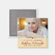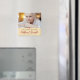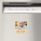 A modern sympathy magnet features photo along the top with script and class font overlaying on light dusty yellow. Decorative heart, this magnet is a true keepsake.