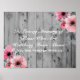 Rustic wood and pink flowers memorial wedding sign- Pink floral In Loving Memory reception poster to honour missing loved ones. Matches rustic country wedding themes and we have coordinating wood wedding invitations, rustic wood guest book, and other complementary wedding decor in our Zazzle.com/angela65 shop. Rustic, grey barnwood or bleached out beach wood planks look background. Reads 'In Loving Memory of Those Who Are Watching From Above You Are Forever With Us' in elegant script and modern fonts. Floral blush and coral pink flowers adorn upper and lower corner. Use the Customise It button if you want to change anything - wording, font styles, sizes, colours, or placement. Complements vintage floral wedding decor or garden wedding, rustic barn wood wedding themes, pink and grey wedding colours, casual outdoor weddings, spring weddings, and weddings in the summertime.