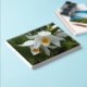 Floral themed guest book for a funeral or memorial that features a photo image of white Coelogyne Orchid blooms along with the name, birth and death dates of the deceased printed in stylised, silver foil print. Back of guest book features similar image. Edit name and dates on front of guest book and replace with your own names and dates as desired. Select your foil print colour.