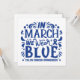 In march we wear blue invitation card. Colon cancer awareness quotes blue ribbon colour gifts. Colourectal cancer prevention retro vintage groovy aesthetic decor small print.