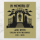 In Memory Of A Cyclist Funeral. The Perfect sympathy card said with kindness and taste. This beautiful design will help heal the wounds of loss and show that you care and sympathise deeply with their sad loss. © Copyright HGIFY | HGI Stores Only. All Rights Reserved.