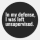 In my defence, I was left unsupervised funny text Classic Round Sticker