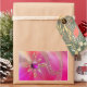 A brilliant fractal flow of pale yellow and orange turning to hot pink, overlaid with gold sun-motif filigree studded with jewels and accented with a smooth deep pink gem surrounded by glowing golden sun rays.
