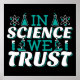 In Science We Trust quote. Cute, artistic, funny science quote with a religious twist. Art has microscope and flask experiment equipment for male or female science teacher. > Use for Science teacher appreciation, Chemistry, Biology or Physics geek, or scientist nerd kids. > Personalise it! Add custom name, photo, or text.