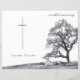 This memorial card has a dark modern and elegant design with a white border around the front and back. In silent mourning - tree on a meadow.