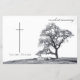 This memorial card has a dark modern and elegant design with a white border around the front and back. In silent mourning - tree on a meadow.