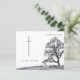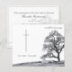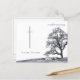 This memorial card has a dark modern and elegant design with a white border around the front and back. In silent mourning - tree on a meadow.
